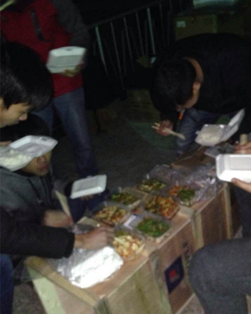 日未出就作,凌晨才息,為了節(jié)約時(shí)間,施工人員只能在現(xiàn)場簡陋的站房內(nèi)吃飯,往往飯未開吃已經(jīng)透涼。四個(gè)站點(diǎn)中,最近的兩個(gè)站點(diǎn)相距50公里,最遠(yuǎn)的則相距逾200公里,路程近三個(gè)小時(shí),而這三個(gè)小時(shí),也就是我們施工人員難得的休息時(shí)間。