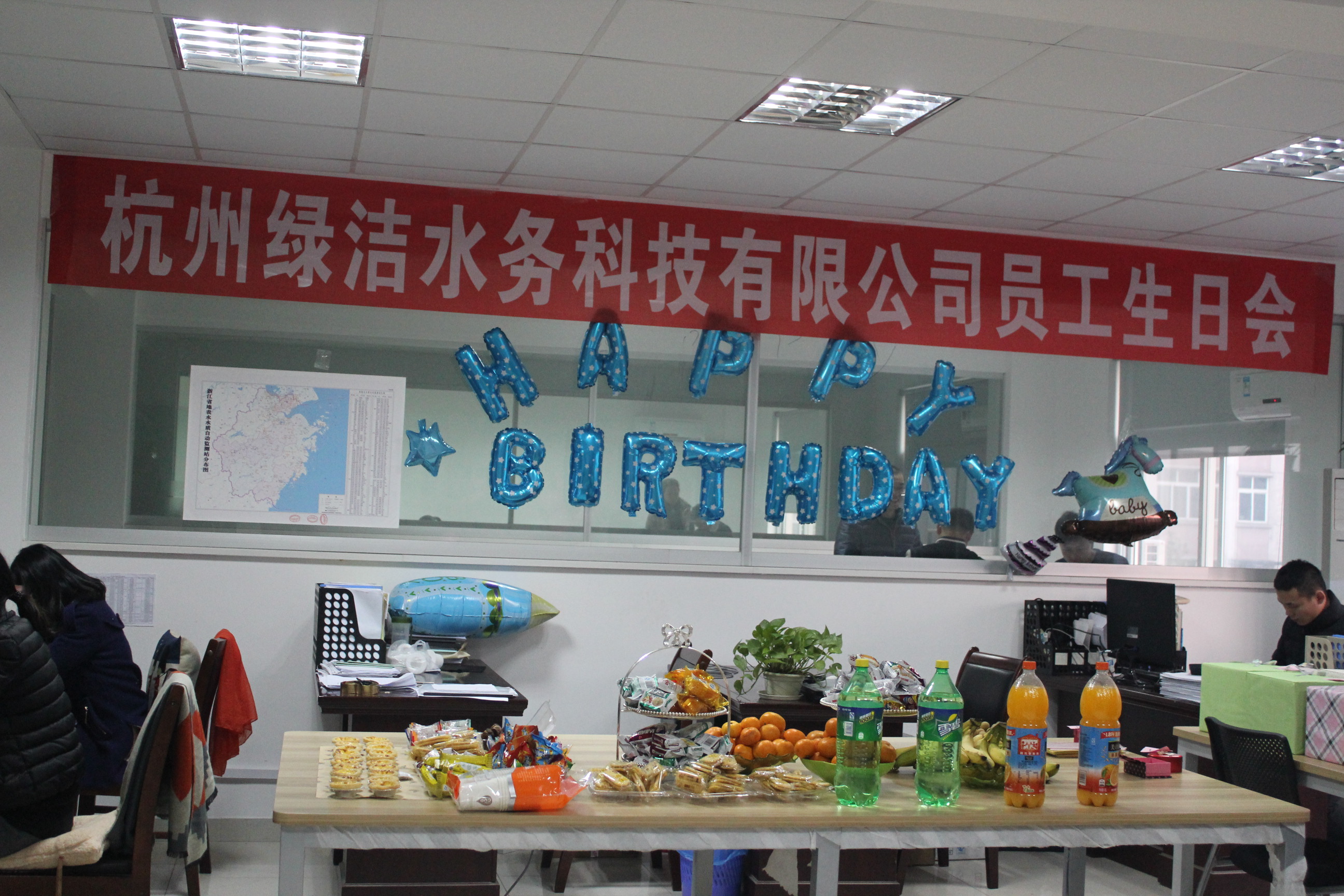 綠潔水務科技有限公司12月份員工生日會在一片喜氣洋洋中度過,雖然短暫,但它帶來的溫暖缺駐留在每一位員工心中。大家不分職務、年齡、部門地圍成一團,彼此分享生日的喜悅與可口的美食,為自己的同事,朋友們送上由衷的祝福,為綠潔這個大家庭在寒冬中增添了不少融融溫情。在平等、開放、高效、進取的工作環境中,相信綠潔會為社會、為客戶帶來更多的價值與驚喜。