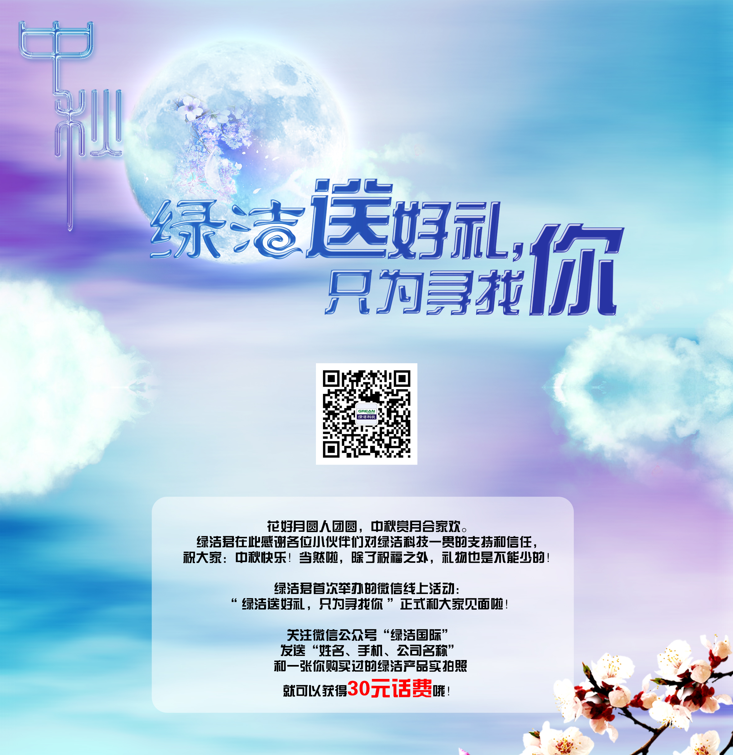 凡購買過綠潔科技產品的小伙伴們關注微信公眾號“綠潔國際(搜索公眾號hzgrean或掃描上圖中的二維碼關注公眾號)”,發送“姓名、手機(包括運營商名稱和號碼歸屬地)、單位名稱(真實可靠)和一張你購買過的綠潔產品實拍照”到公眾號,經綠潔君確認之后,就可以獲得30元話費哦!購買過水站運維或集成服務的小伙伴們也可以發送水站門口站牌的實拍照片,一樣會獲得禮品哦~當然啦,一定要保證拍攝的圖片是高清大圖,不然綠潔君會看不清楚的~